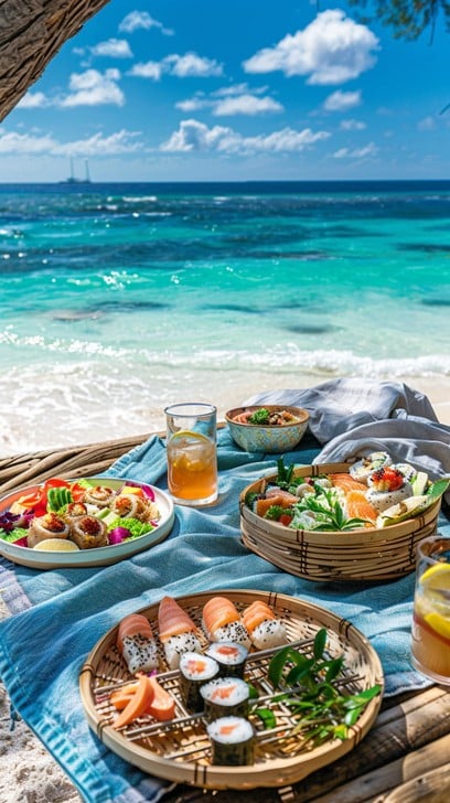 Waves whisper secrets of flavor, where sand meets gourmet dreams, igniting the taste of the worlds embrace.
